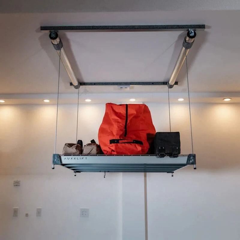 Instead of stacking items dangerously or filling every corner of your garage, the Auxx Lift allows you to keep everything organized and within reach when needed.